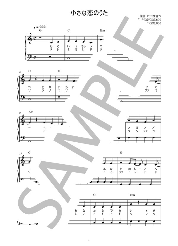 楽譜 小さな恋のうた モンゴル800 ピアノ かんたん 歌詞付き ドレミ付き 初心者 Mongol800 ピアノソロ 入門 Piascore 楽譜ストア
